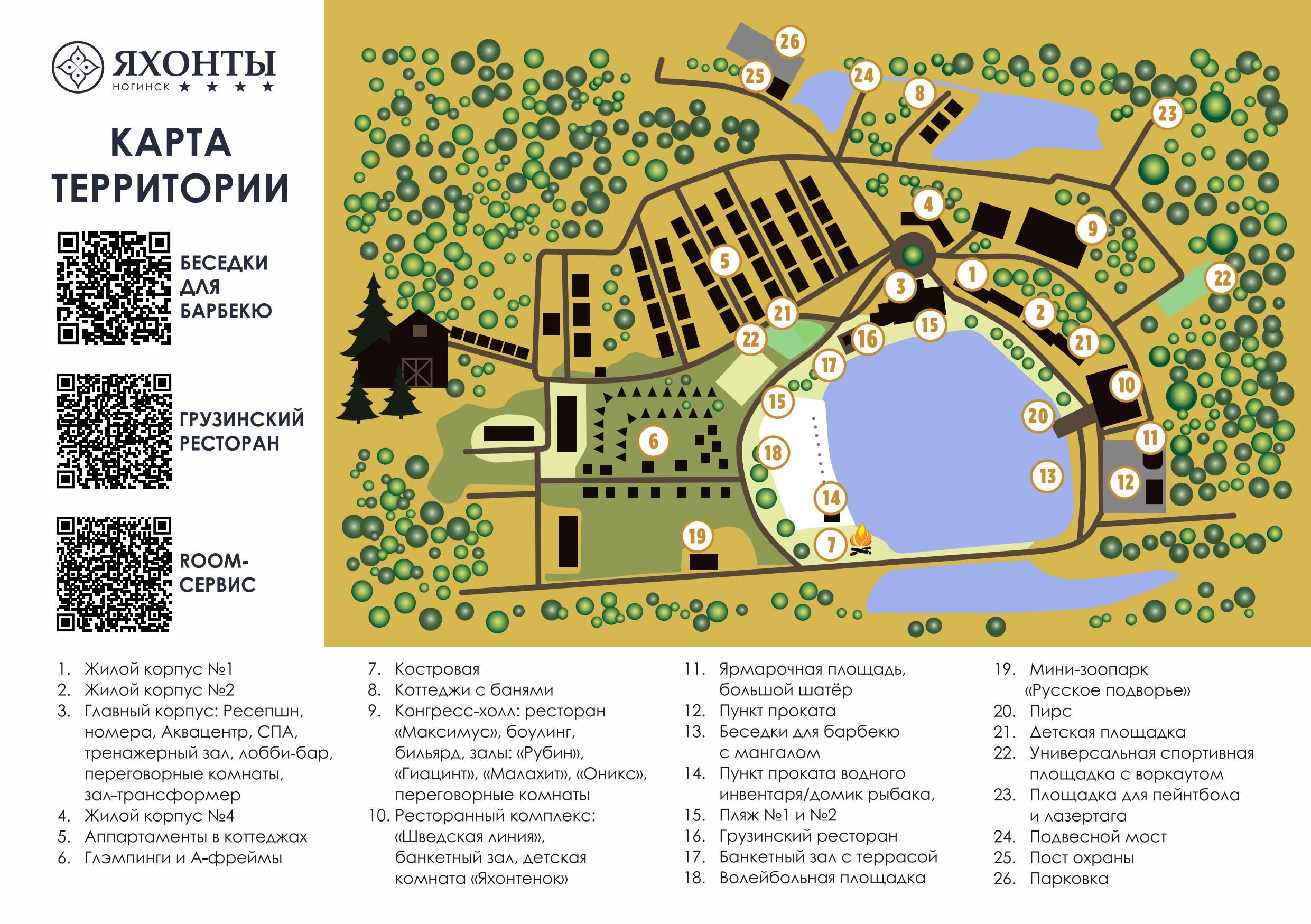 «Яхонты Ногинск» идеально подходит как для семейного отдыха, так и для проведения корпоративных мероприятий. Для семей здесь созданы все условия для комфортного и безопасного пребывания: удобные номера, глэмпинги и коттеджи, просторные территории для прогулок и игр, а также разнообразие развлечений для детей и взрослых. Для бизнесменов и компаний доступны современные конференц-залы, оборудованные всем необходимым для успешных деловых встреч и мероприятий.